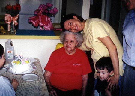 Maryann acompañada por sus hijos felicita a su abuelita